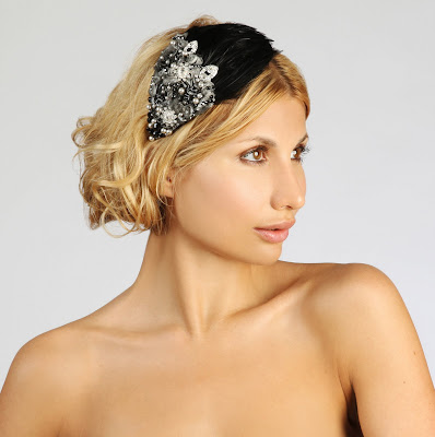 She is inspired by 1920’s and 1930’s Hollywood glamour, which is expressed in the luxurious materials such as French lace, silk, Swarovski crystals, ostrich feathers, glass beads, mother of pearls and vintage findings that are used in her beautifully crafted headpieces.